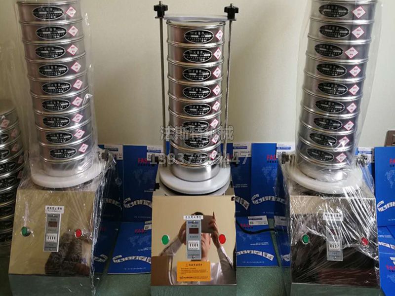 試驗振動篩通過振動電機帶動上部振動盤振動,再通過振動盤傳導至按放在振動盤上部的國標試驗篩框,然后,把小于篩框孔徑的物料篩分至下層篩框,如此層層篩選,使每層試驗篩內留下相同粒度的物料,達到不同粒度的分離分選,并確定此物料的粒度組成。