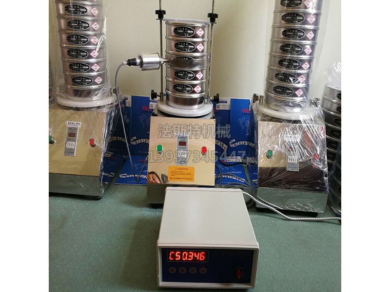試驗(yàn)振動(dòng)篩通過振動(dòng)電機(jī)帶動(dòng)上部振動(dòng)盤振動(dòng),再通過振動(dòng)盤傳導(dǎo)至按放在振動(dòng)盤上部的國標(biāo)試驗(yàn)篩框,然后,把小于篩框孔徑的物料篩分至下層篩框,如此層層篩選,使每層試驗(yàn)篩內(nèi)留下相同粒度的物料,達(dá)到不同粒度的分離分選,并確定此物料的粒度組成。