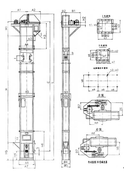 (四)TD型皮帶式斗式提升機外形及安裝尺寸: