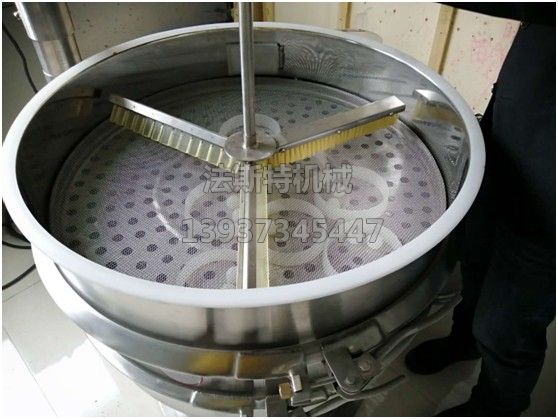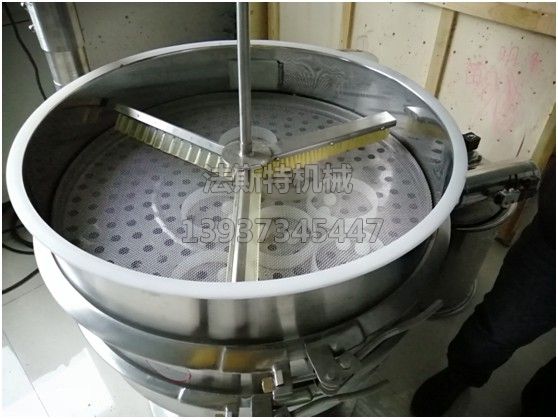 例如在面粉篩分中,有些細渣子卡在網(wǎng)孔中,在刮板旋轉推動的作用下,可以將雜質推向出料口,自動排出,減少了堵網(wǎng)的發(fā)生;在固液分離作業(yè)中,能把各類漿液中的非溶性物質迅速地清除從出料口排出,防止堵網(wǎng),提高篩分效率。
